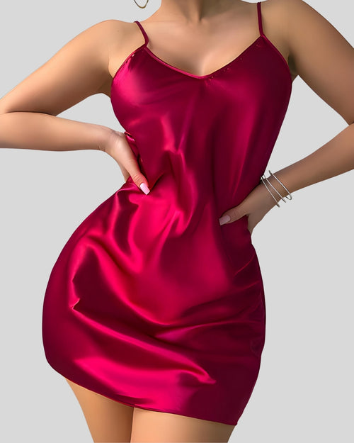 • Silk Deep Halter Neck Nightgown For Valentine's day, Night Dress, Party Dress